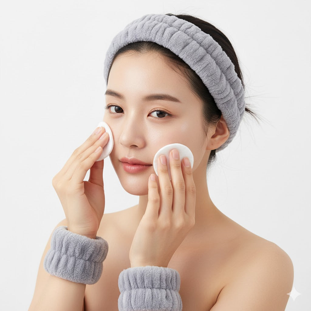 Kit Hairband e Pulseiras Protetoras para Skincare