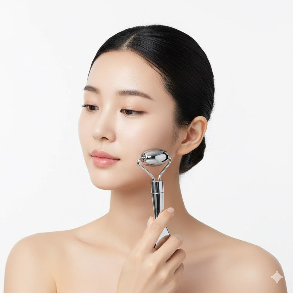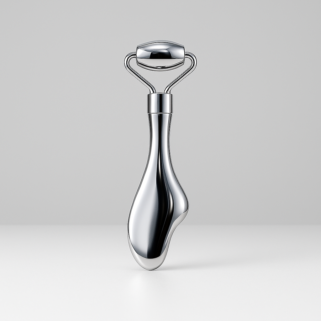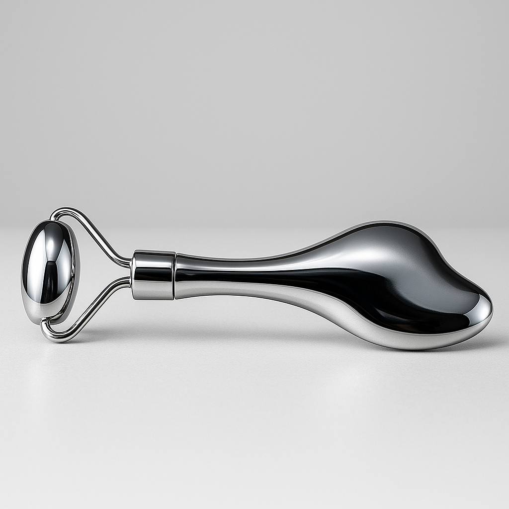O Massageador Facial de Aço Inoxidável é um instrumento de beleza desenvolvido para estimular a circulação, reduzir inchaços e relaxar a musculatura facial. Feito em aço inoxidável, mantém uma temperatura naturalmente fria, ideal para aliviar olheiras, refrescar a pele e potencializar a absorção de produtos de skincare.